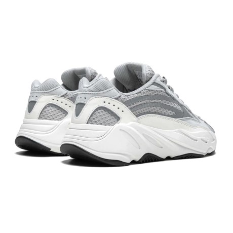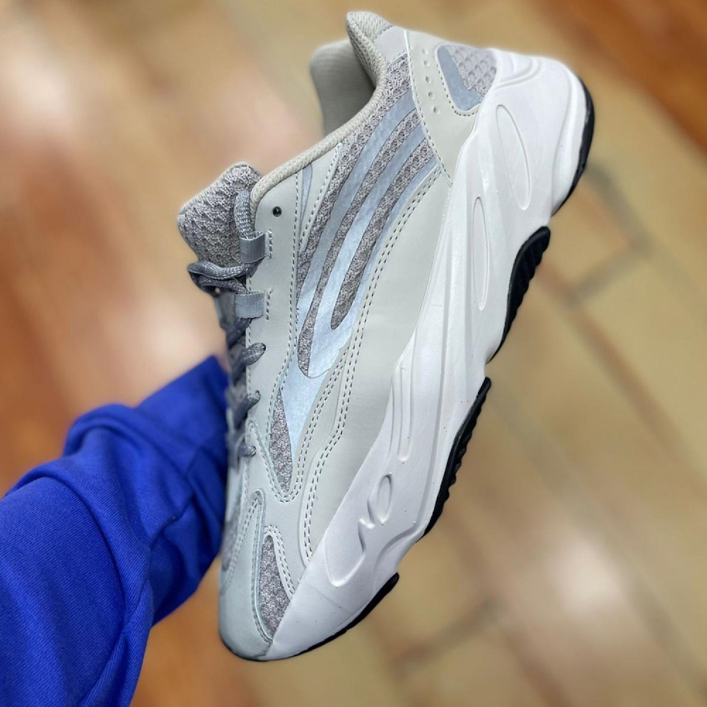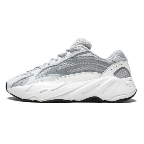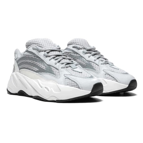 Adidas Yeezy Boost 700 V2 Static - это первая расцветка обновлённой серии 700 от Канье Уэста. Светлый верх Static с светоотражающим рисунком в виде полос дополнен деталями из высококачественной светлой кожи и замши. Фирменная подошва Boost в белом оттенке имеет черный низ, на которой выдавлен логотип Adidas. Стелька Ortholite с эффектом памяти. Иметь такие кроссовки в своем гардеробе в наши дни, это показатель роскоши, высокого статуса и хорошего вкуса.