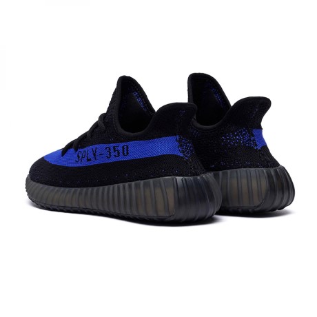 YEEZY 350 V2 CORE BlLACK DAZZLING BLUE это обновленная версия дебютировавших в 2016 году моделей CORE BLACK. Основное отличие это синяя полоса, проходящая вдоль всего кроссовка. Традиционно тканый верх Primeknit черного цвета. Отсутствует задняя петля. Подошва с амортизационным материалом Boost. Пенная стелька Ortholite с эффектом памяти.