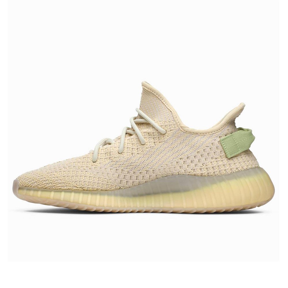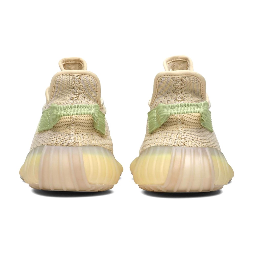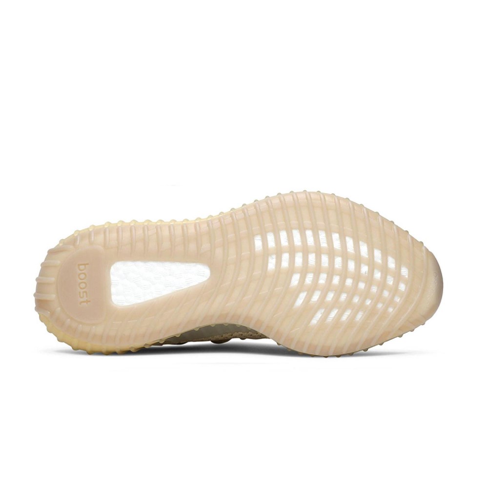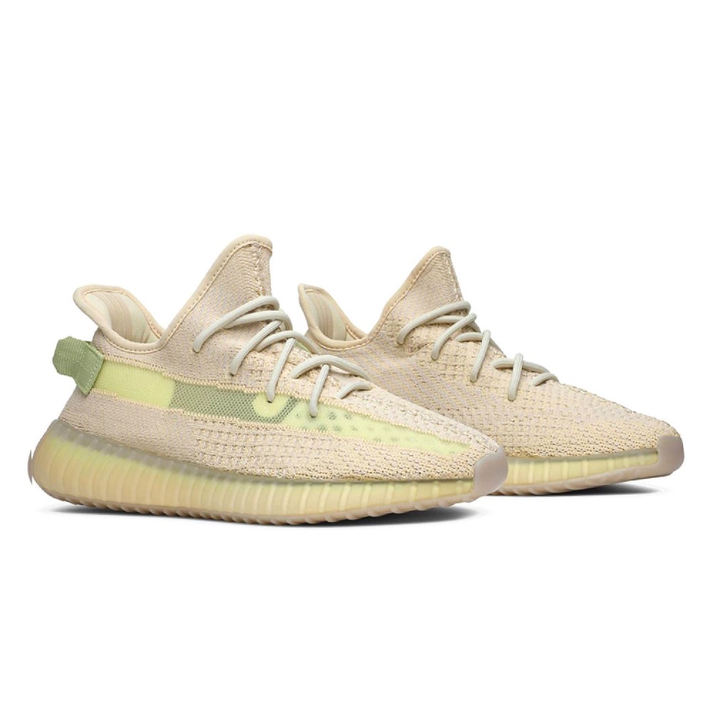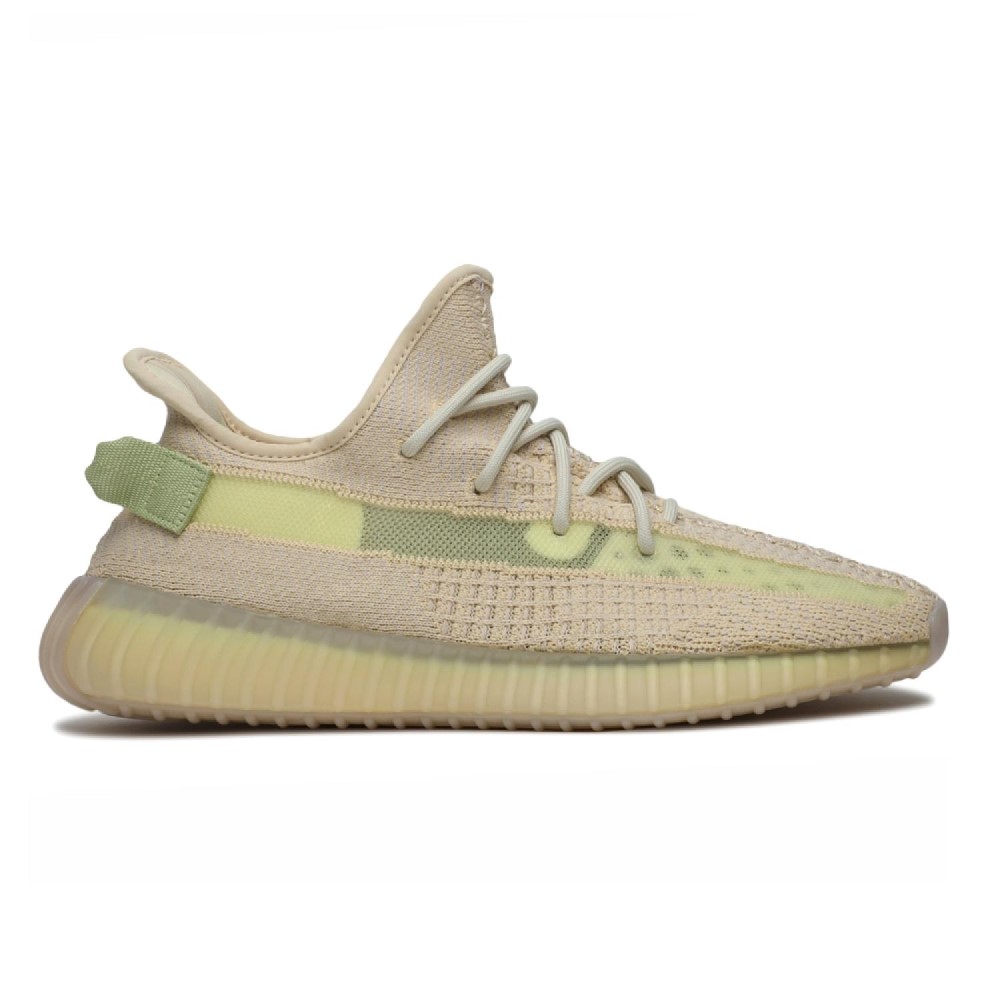 Adidas Yeezy Boost 350 V2 Flax представляют собой тектильный верх сшитый по технологии Primeknit пшеничного оттенка. Прозрачная боковая полоса из моноволокна проходит вдоль всего кроссовка. Сзади петля для подтягивания. Такая же окраска используется на резиновой ребристой поверхности TPU midsole, которая инкапсулирует подошву Boost midsole. Сама подошва выполнена из липкой резины grippy gum с надписью ''Boost''. Пенная стелька Ortholite с эффектом памяти.
