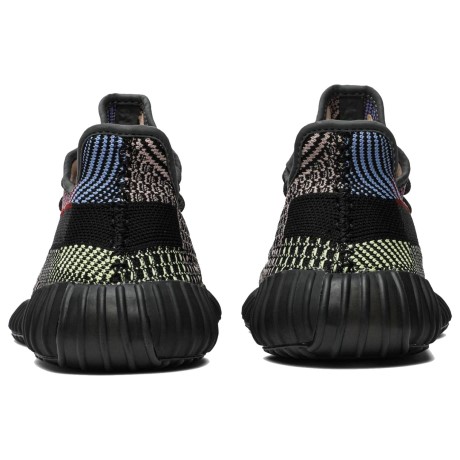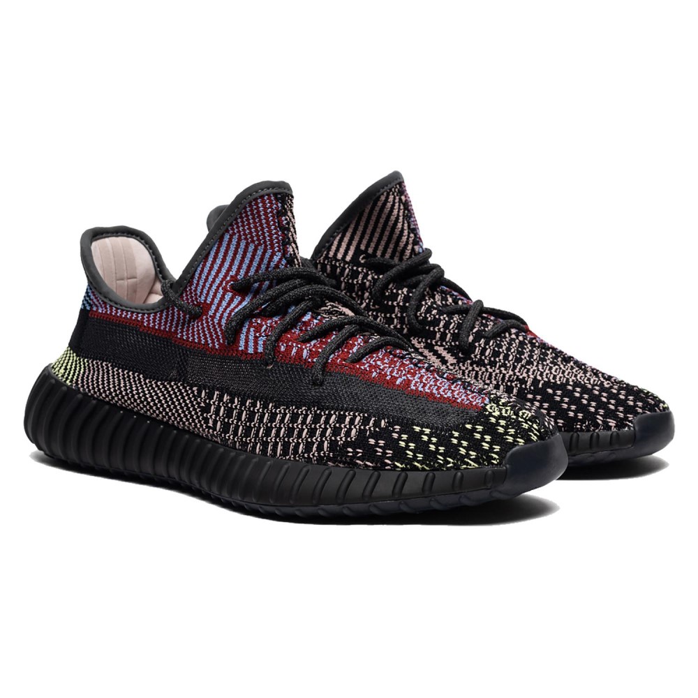 Adidas Yeezy Boost 350 V2 YECHEIL REFLECTIVE - многоцветная модель для самых стильных любителей streetwear. Главное отличие от обычной версии YECHEIL наличие рефлективных нитей по всей поверхности кроссовок. Разные цветовые оттенки рефлективных нитей гармонично вплетены в воздухопроницаемый материал Primeknit. Основной оттенок черного цвета растворяется оттенками синего, красного, розового и желтого. Средняя часть верха модели отличается более упрощенным двухцветным переплетением черного и светло-розового цветов. Боковая черная полоса из полупрозрачного моноволокна контрастирует с общей окраской. Красочным дополнением кроссовок выступают рефлективные шнурки. Средний слой подошвы с амортизацией Boost. Пенная стелька Ortholite с эффектом памяти.