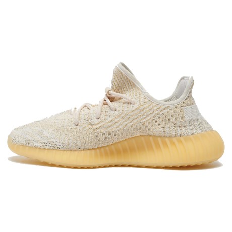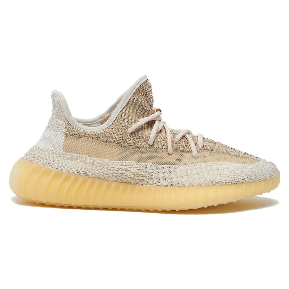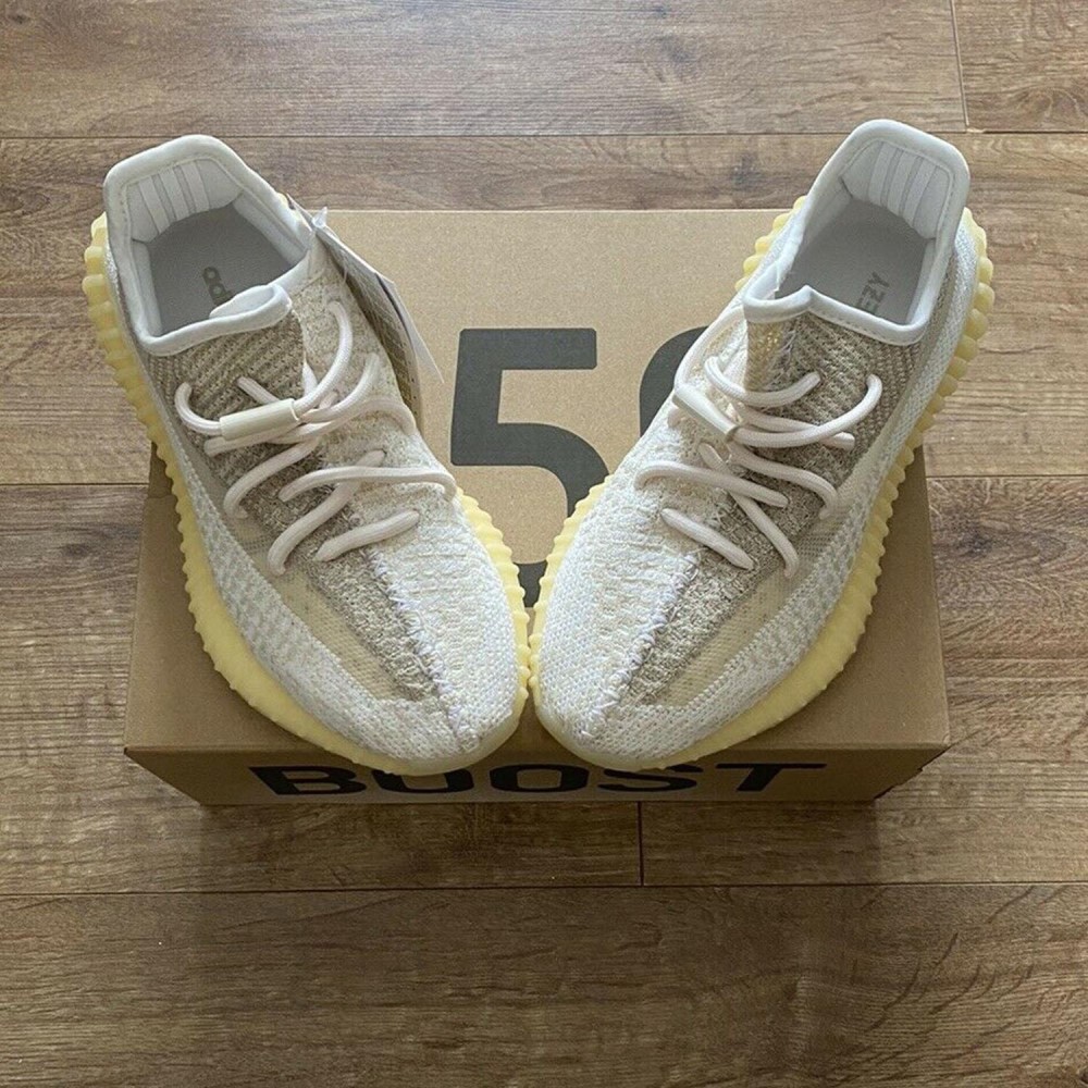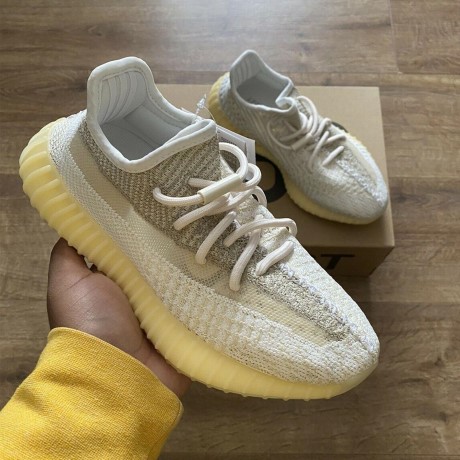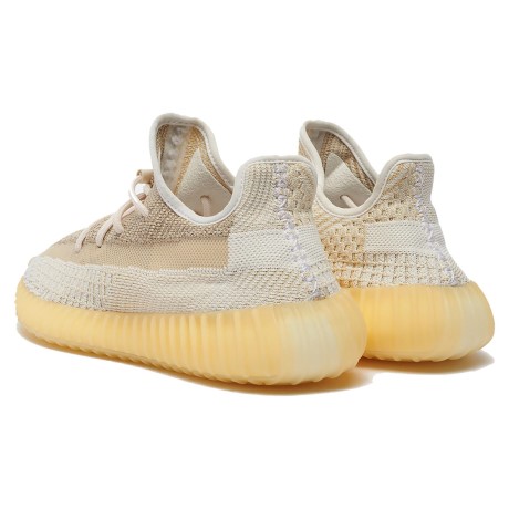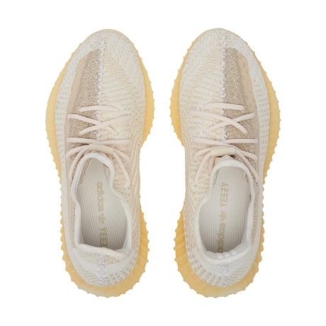 Adidas Yeezy Boost 350 V2 Natural представляют собой тектильный верх сшитый по технологии Primeknit бледно-желтый оттенков. Модель подчеркивает прозрачная полоса из моноволокна. Такая же окраска используется на резиновой ребристой поверхности TPU midsole, которая инкапсулирует подошву Boost midsole. Сама подошва выполнена из липкой резины grippy gum с надписью ''Boost''. Пенная стелька Ortholite с эффектом памяти.