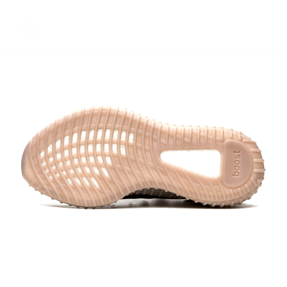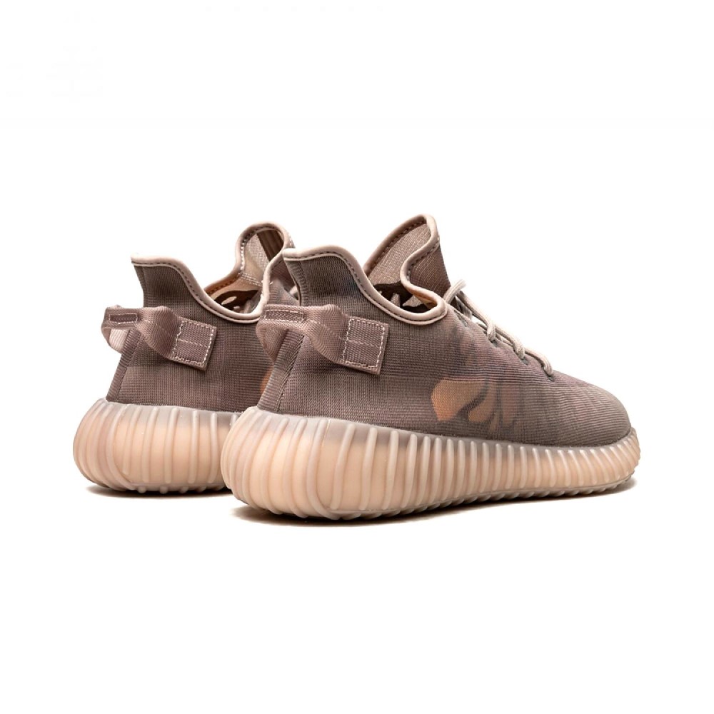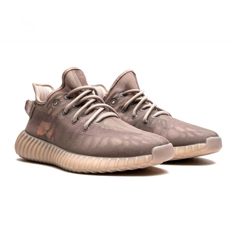 Вместо традиционной ткани Primeknit верх Adidas Yeezy Boost 350 V2 Mono Mist выполнен из моноволоконного сетчатого материала, с ячеистыми вставками в коричневых тонах. Вместо привычной шнуровки люверсы. Сзади петля для подтягивания. Подошва с амортизационным материалом Boost. Пенная стелька Ortholite с эффектом памяти.