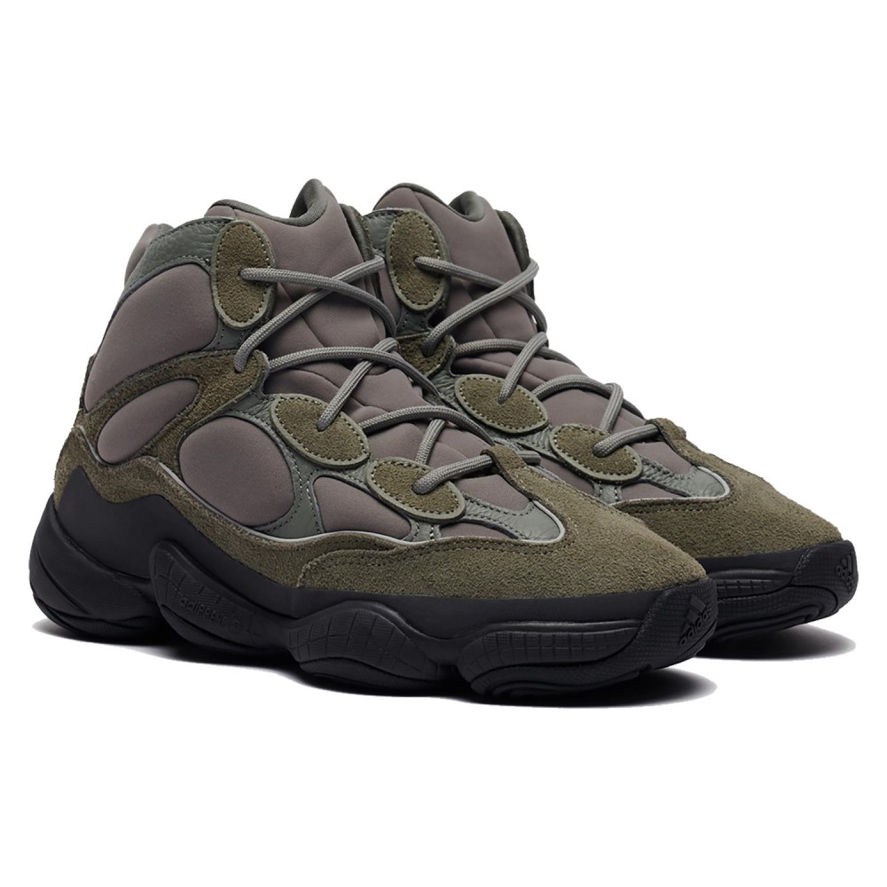 Новое переиздание модели Yeezy Desert Boot совместно с компанией adidas. На этот раз ботинки Yeezy Hight Mist Slate наделены более легкой подошвой с улучшенным сцеплением, а также прекрасной вентиляцией. В целом, дизайн во многом вдохновлен образом армейских ботинок армии США. Ботинки прекрасно подойдут для осенней погоды, при использовании в условиях умеренной влажности. Изысканная расцветка прекрасно дополнит ваш образ.