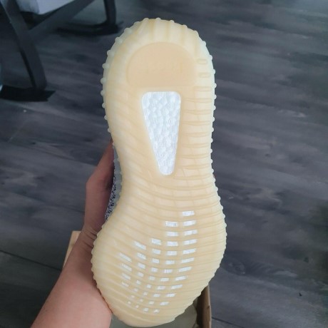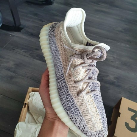 Adidas Yeezy Boost 350 V2 Ash Pearl выполнены из традиционной ткани Primeknit в светло-бежевых оттенках, которые распространяется и на шнуровку. Классическая полупрозрачная полоса из моноволокна, которая проходит вдоль кроссовка, исполнена оранжевого цвета. Подошва с амортизационным материалом Boost и оснащена пенной стелькой Ortholite с эффектом памяти.
