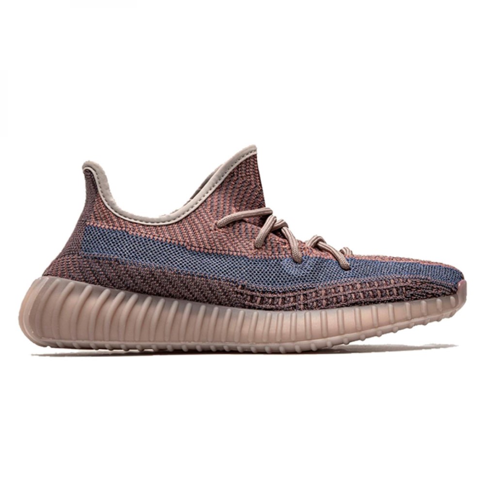 Adidas Yeezy Boost 350 V2 Fade выполнены из традиционной ткани Primeknit в сочетании светлых и темных оттенков коричневого цвета, которые распространяется и на шнуровку. Уникальным отличием модели является полупрозрачная боковая полоса, которая выполнена в синем оттенке и проходит вдоль всего кроссовка. Полупрозрачная подошва подошва в кремово-бежевом оттенке, с амортизационным материалом Boost оснащена пенной стелькой Ortholite с эффектом памяти.